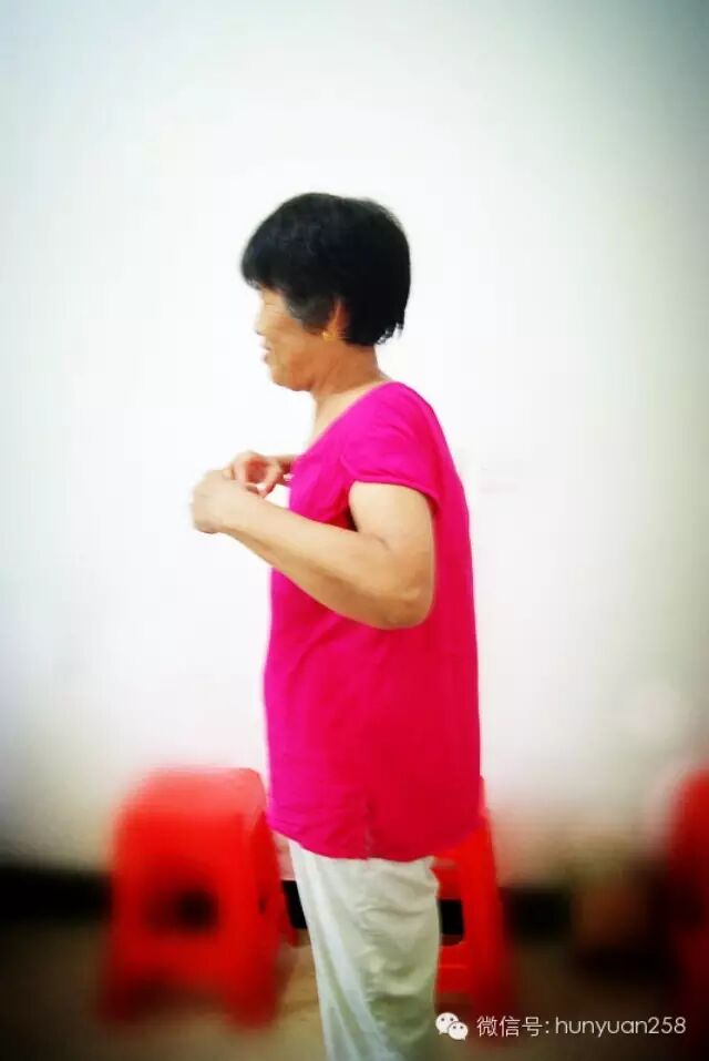 吃了饭我就站着练,站累了我就坐着练,坐累了就躺着练。反正老师说了:时间上不封顶。嗨。真没想到我一开始只能站几分钟,慢慢地能站上半小时、40分钟。现在已能和丈夫一齐站到1个多小时了。更不可想象的是,站到第五天,皮下肌肉、内脏器官和骨骼三层都有了麻热胀感(是幻觉,还是真的感觉)但是我现在饭量增加了,睡觉实在了,身上有了轻松感,长年疼痛的右肩昨天忽然不疼了,沉重的右腿也轻松了许多,多年的斜膀子也得到矫正。原来上下楼梯需要拉着丈夫的手,现在自己放心上下了。